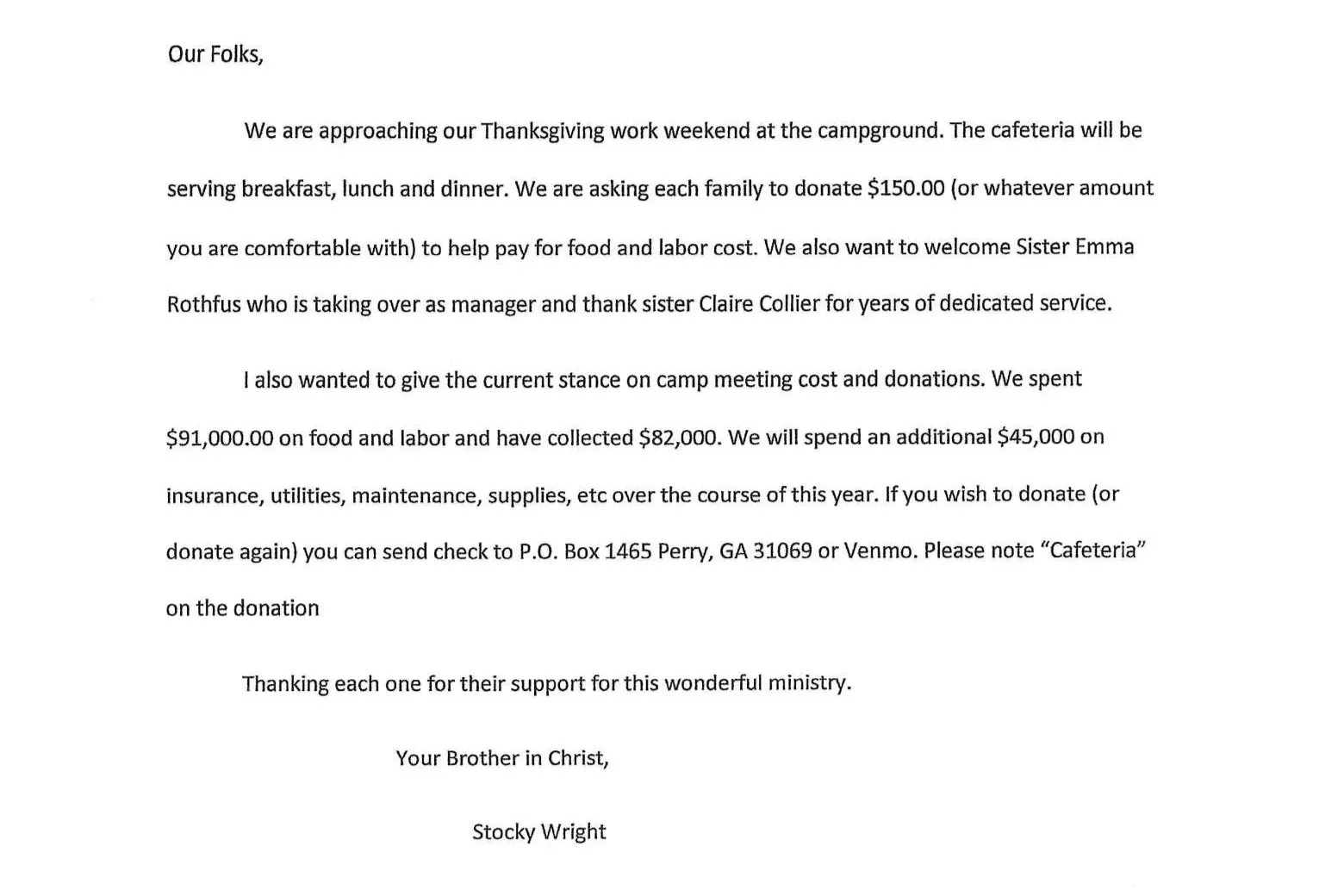 Young People’s Work Program will again do valuable work at our church campground in Perry, GA at Thanksgiving work weekend. Bro. Derek Robuck is the current manager of this program and works with the BOE representative, Bro. Gene Mustin. All hands are needed to help keep out campground safe and maintained.